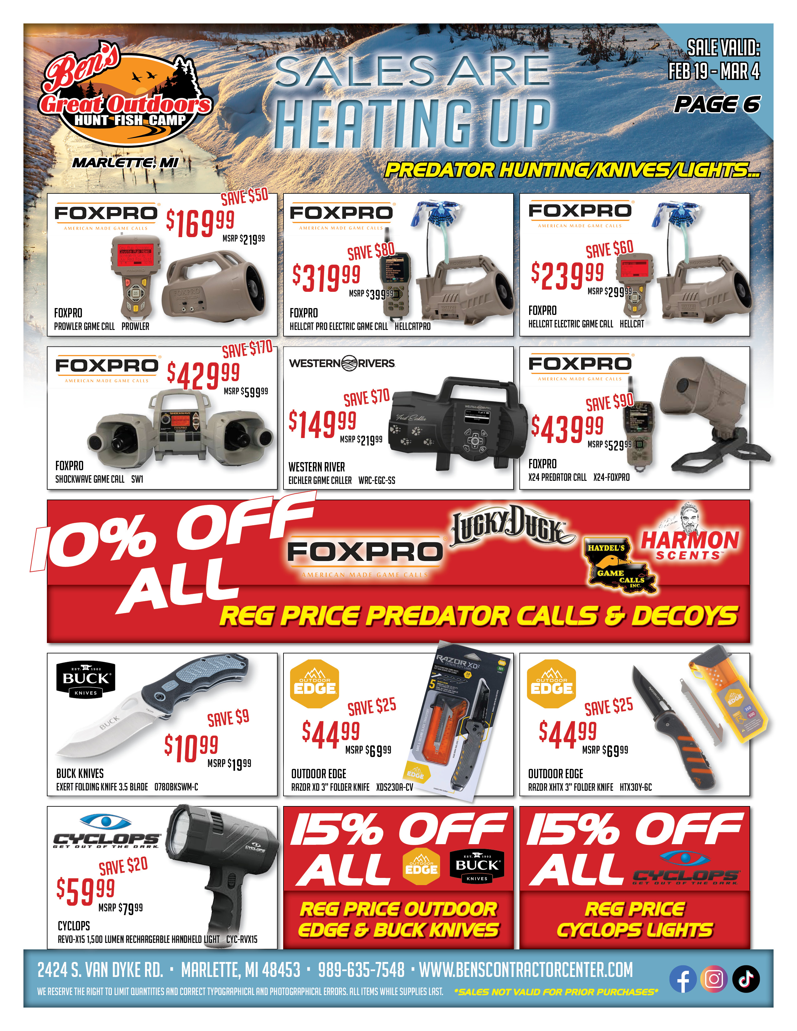 Whether you're chasing late ice, gearing up for grilling season, calling in coyotes, or stocking the freezer - we've got the deals to make it happen.
